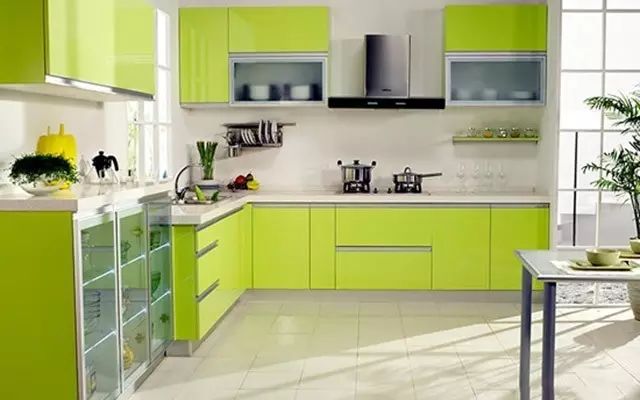 ▲ 這款櫥柜門顏色效果圖眼便給人一種小清新的感覺,櫥柜門板為蘋果綠烤漆材質(zhì),用色十分鮮艷和新穎,不添加其他顏色修飾,純粹 的綠意營(yíng)造了一種春天般的氣息。