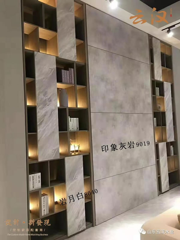 【印象灰?guī)r】仿石紋配合金色一體成型拉手,紋理逼真,高端大氣。