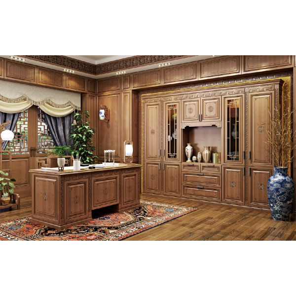 中式的書桌與書柜,細致刻畫的紋理,展現(xiàn)莊重與優(yōu)雅,整體的簡潔之風(fēng)帶你陷入較深的沉迷。 產(chǎn)品參數(shù):金絲櫻桃,頂線16-5,羅馬柱LM216-17,楣板16-7,踢腳板16-2
